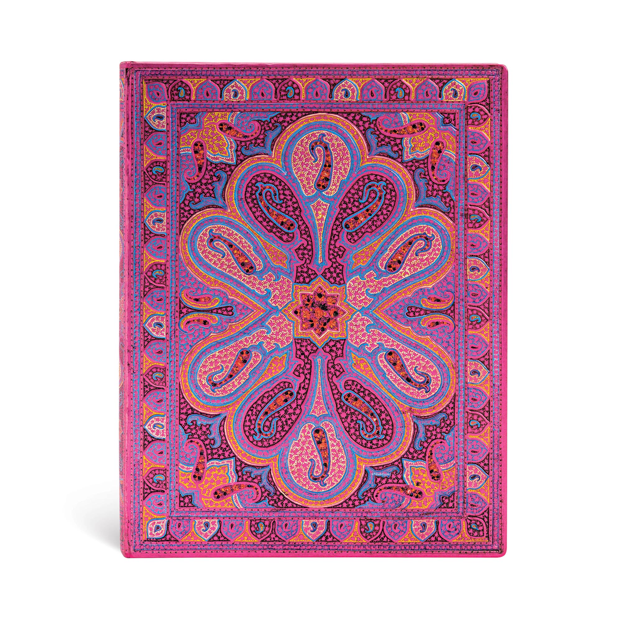 This vibrant and color popping design is based on an 18th century design from Bukhara, Uzbekistan.  Bukhara has been known as “Place of Good Fortune” – it is located on the Silk Road. Hard to show the incredible iridescence of the artwork on the covers in photos.  It shines and sparkles!